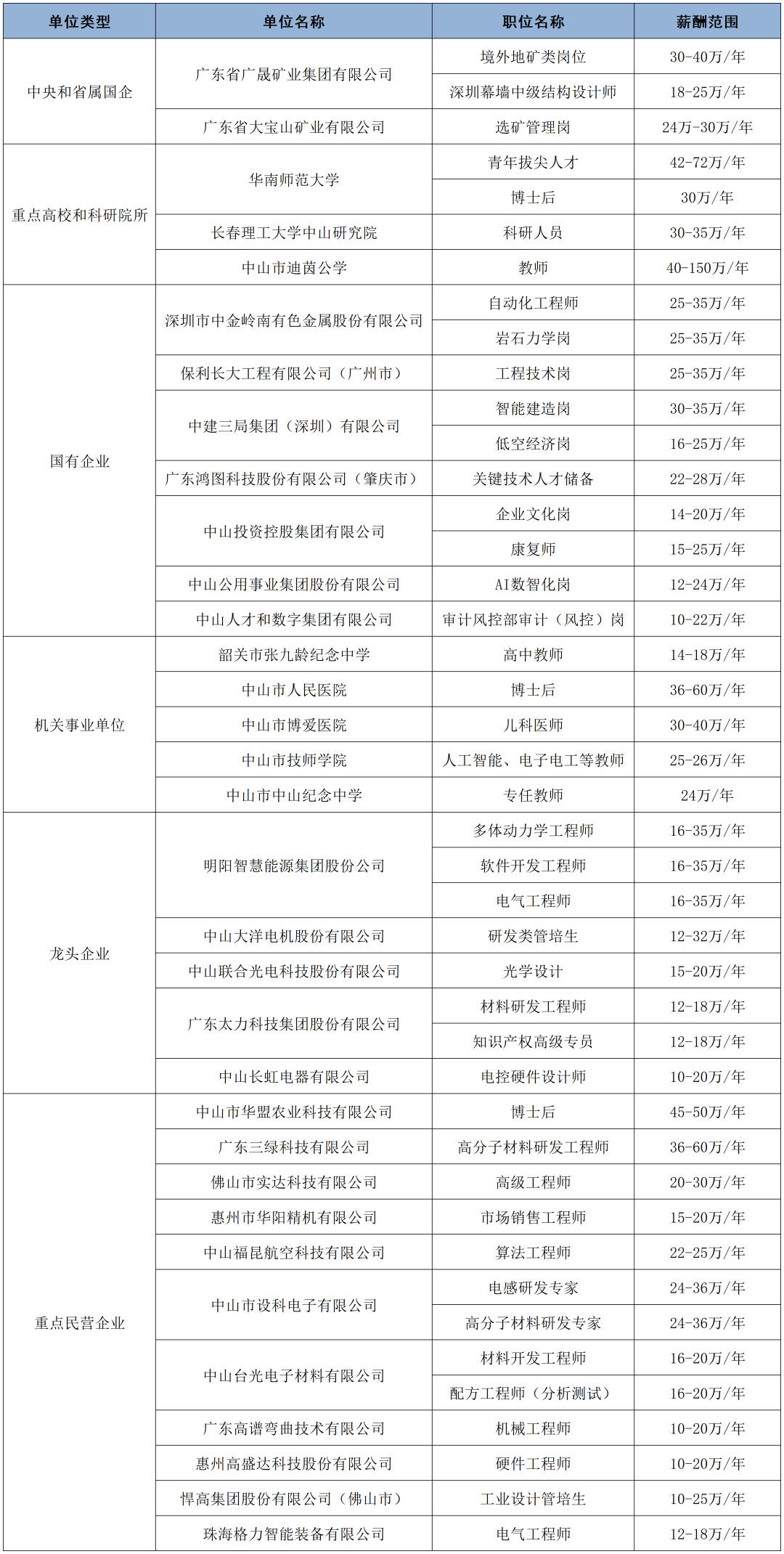 学历人才支持:博士后最高72万元综合支持(研发经费+生活补贴+留中山工作补贴),博士最高30万元生活补贴(45周岁以下),硕士符合条件可获3万元生活补贴(全日制,企业引进,45周岁以下)。