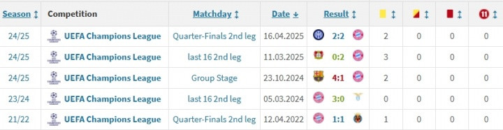 国米2-2拜仁——24/25赛季欧冠1/4决赛次回合(拜仁总比分3-4遭淘汰)