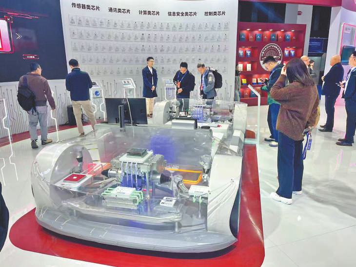 记者了解到,实体车模后方的大屏幕上同步显示着3D互动模型。观众轻触屏幕,即可开启一场“芯片级”的汽车探索之旅——从中央计算单元到区域控制器,每颗芯片的产品参数、技术亮点、企业实力都以3D动态形式立体呈现,购车决策有了硬核数据支撑。